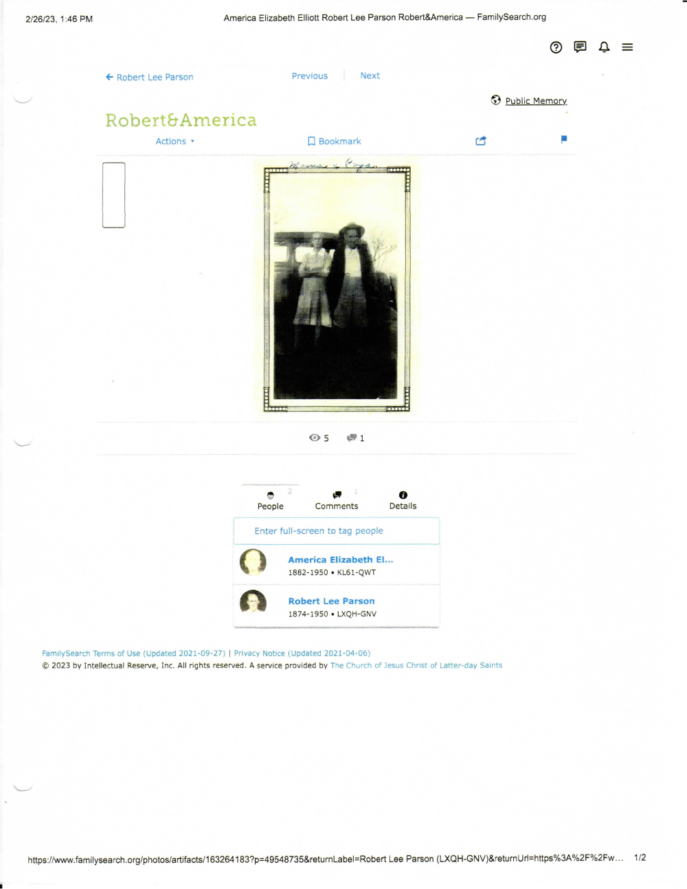 Great Great Grandparents Robert Lee Parsons And America Elizabeth Elliot Parsons Click